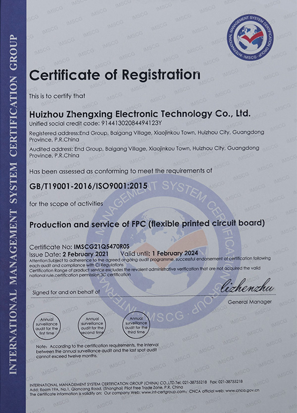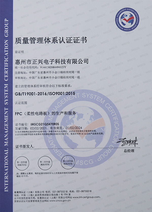 質(zhì)量管理體系證書