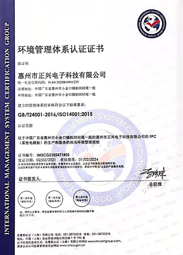 環(huán)境管理體系證書