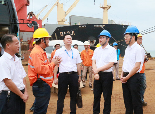 集團黨委副書記、紀委書記肖炳璋前往了保豐碼頭參觀了碼頭集裝箱散貨、鎳礦裝卸情況