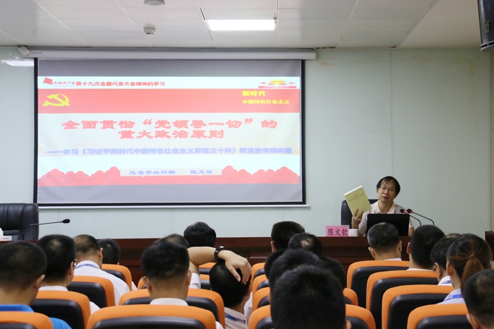 為推動進一步深入學習貫徹習近平新時代中國特色社會主義思想,根據(jù)市委宣傳部的通知要求,7月27日,茂名港集團組織舉辦《習近平新時代中國特色社會主義思想三十講》專題宣講報告會,邀請市委宣講團成員、市社科聯(lián)專職副主席陳文欽到會作專題輔導。集團領(lǐng)導羅大方、肖炳璋、楊超燦,以及集團機關(guān)各部室、下屬企業(yè)黨員干部近百人參加了宣講會。
