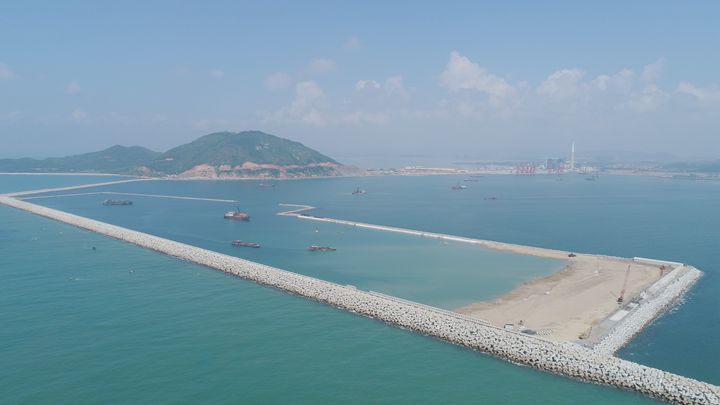 據(jù)項(xiàng)目相關(guān)負(fù)責(zé)人透露,近日天氣晴好,是項(xiàng)目施工的利好天氣,目前該項(xiàng)目已進(jìn)入施工高峰期。只見工地現(xiàn)場繁忙有序,作業(yè)人員有的進(jìn)行扭王塊安裝、有的進(jìn)行擋浪墻澆筑等上部結(jié)構(gòu)施工……各人各司其職,大干快上的施工熱潮一浪接一浪。據(jù)悉,該項(xiàng)目主要分兩期建設(shè),一期為護(hù)岸工程,自開工以來已完成項(xiàng)目工程總量的94%,水下部分基本完成,目前在進(jìn)行扭王塊安裝、擋浪墻澆筑等上部結(jié)構(gòu)施工;二期為陸域形成及地基處理工程,今年8月29日開工,目前正在進(jìn)行海上吹填施工,累計(jì)回填量約172萬方。